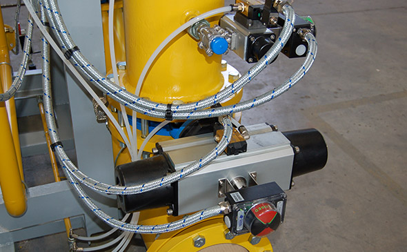 空分設(shè)備是煤化工行業(yè)、石化行業(yè)在生產(chǎn)制造過程中使用的重要儀器設(shè)備,其運(yùn)作機(jī)械原理是實(shí)現(xiàn)對(duì)空氣的降溫冷卻,同時(shí)以增壓方式讓空氣的體積變小、轉(zhuǎn)化為液態(tài),根據(jù)空氣中各組成氣體之間的沸點(diǎn)差異,讓液化物與氣體充分接觸并發(fā)生反應(yīng),在熱質(zhì)交換原理的作用下,實(shí)現(xiàn)高純度氣體的分離。得銳自動(dòng)化公司閥門在空分設(shè)備上的應(yīng)用主要分為兩大塊,大型空分設(shè)備上采用OMAL歐瑪爾的高頻、快速特性的氣動(dòng)執(zhí)行器,在小型空分設(shè)備上使用的是OMAL歐瑪爾氣動(dòng)梭閥和角座閥。